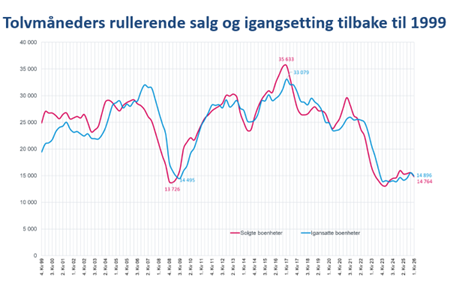 Salg og igangsetting faller i første kvartal 2026. Over tid har aktiviteten vært betydelig lavere enn det beregnede boligbehovet. Krisen forsterkes av mangelen på politisk handlekraft og gjennomføring av nødvendige tiltak, sier Lars Jacob Hiim, administrerende direktør i Boligprodusentenes Forening. Norges Banks signaler om nye renteøkninger øker usikkerhet, og eventuelt økt rentenivå vil forsterke tilbakegangen i nyboligmarkedet ytterligere, understreker Hiim.