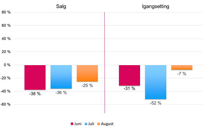 15.09.2022 | Boligbarometeret, Boligpolitikk, Statistikk, Pressemeldinger Fallende salg trettende måned på rad Salget av nye boliger i juli og august 2022 er 29 prosent under 2021, sier administrerende direktør Lars Jacob Hiim.